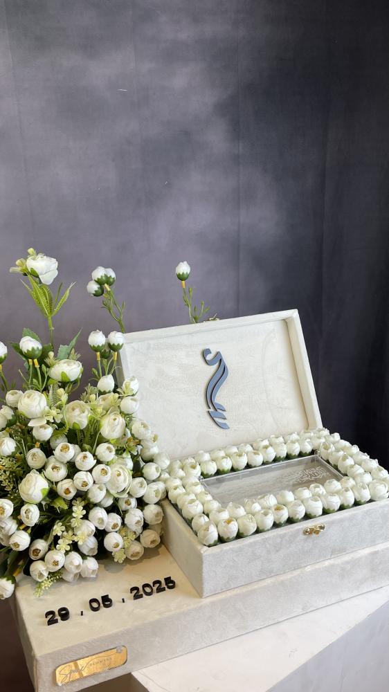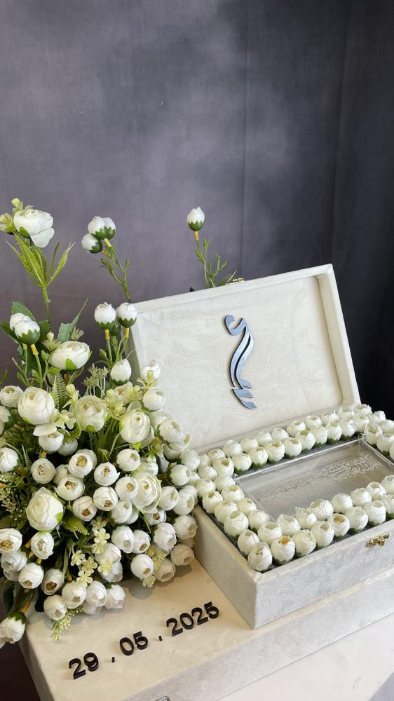 صندوق تقديم مهر بتصميم فاخر مزين بالورود الصناعية